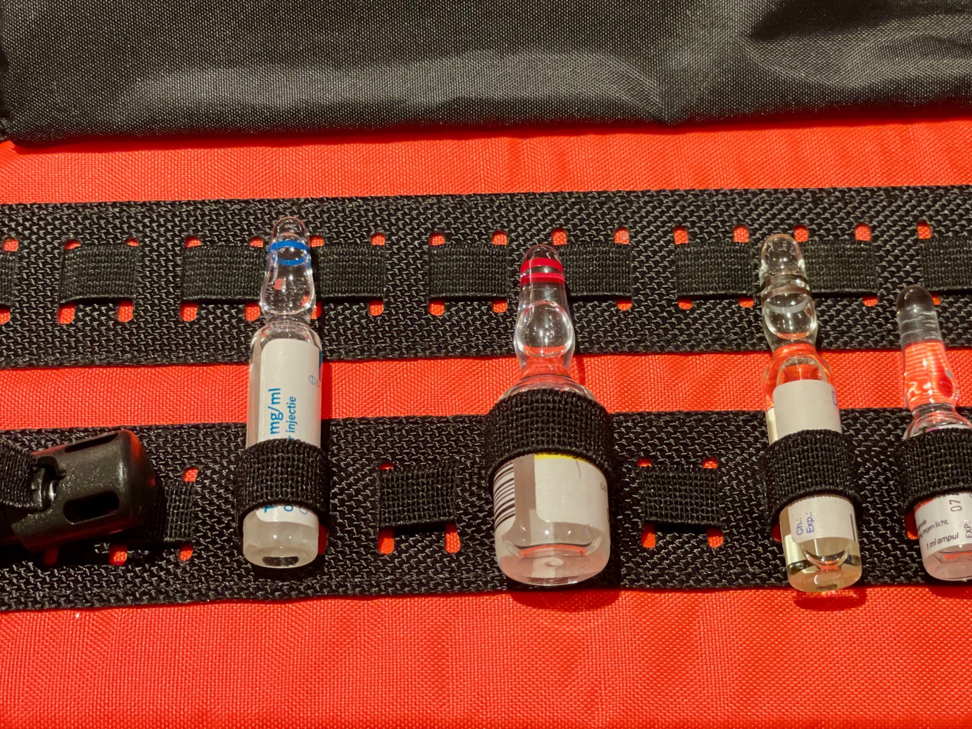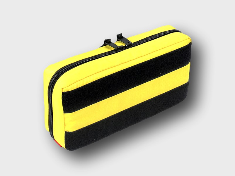 The elongated format (26 x 13 x 7 cm) fits perfectly in emergency bags and backpacks. The Velcro on the outside ensures secure attachment, preventing the ampoule holder from shifting during transport. The bright yellow colour enables quick recognition in acute situations.