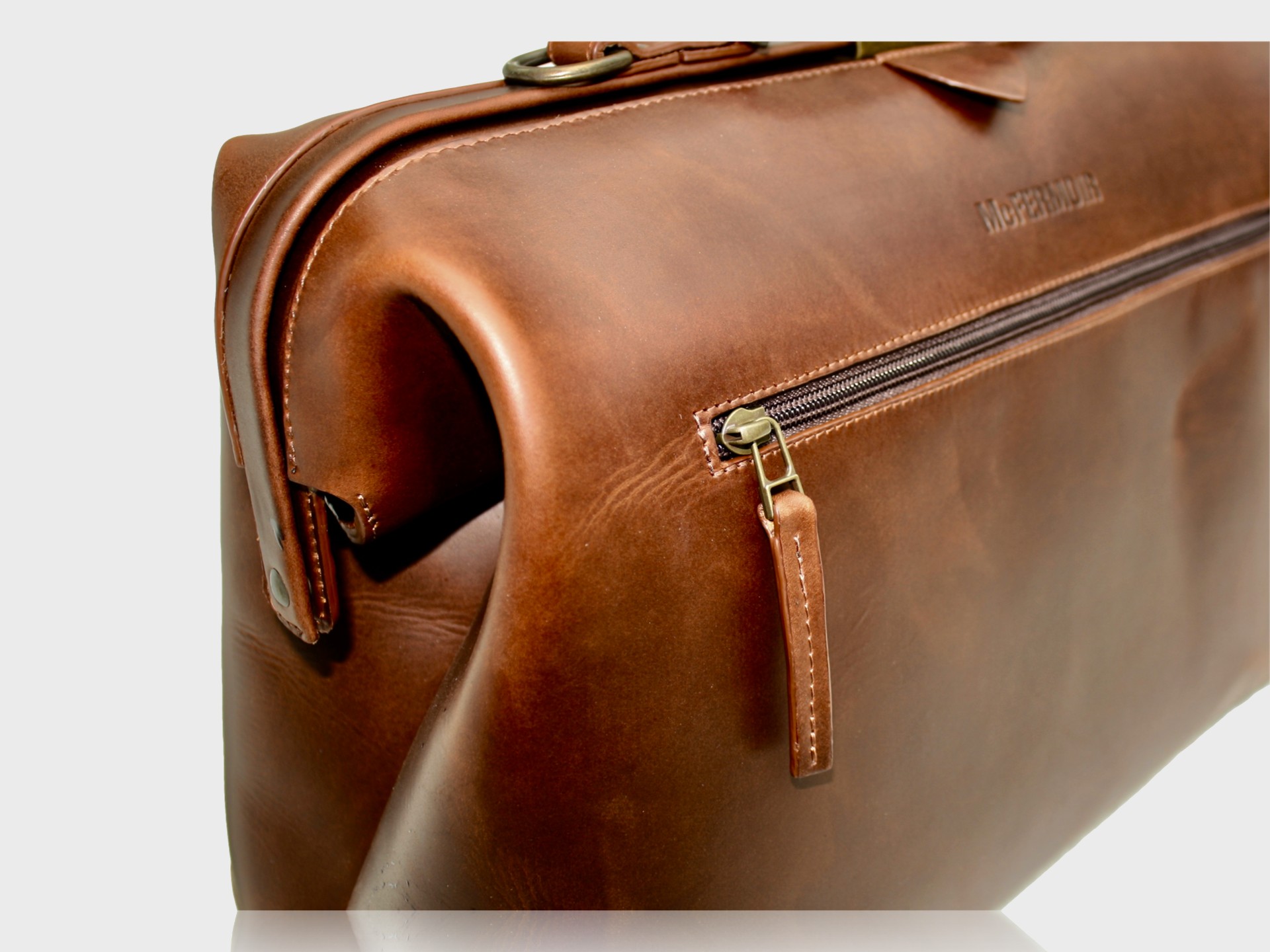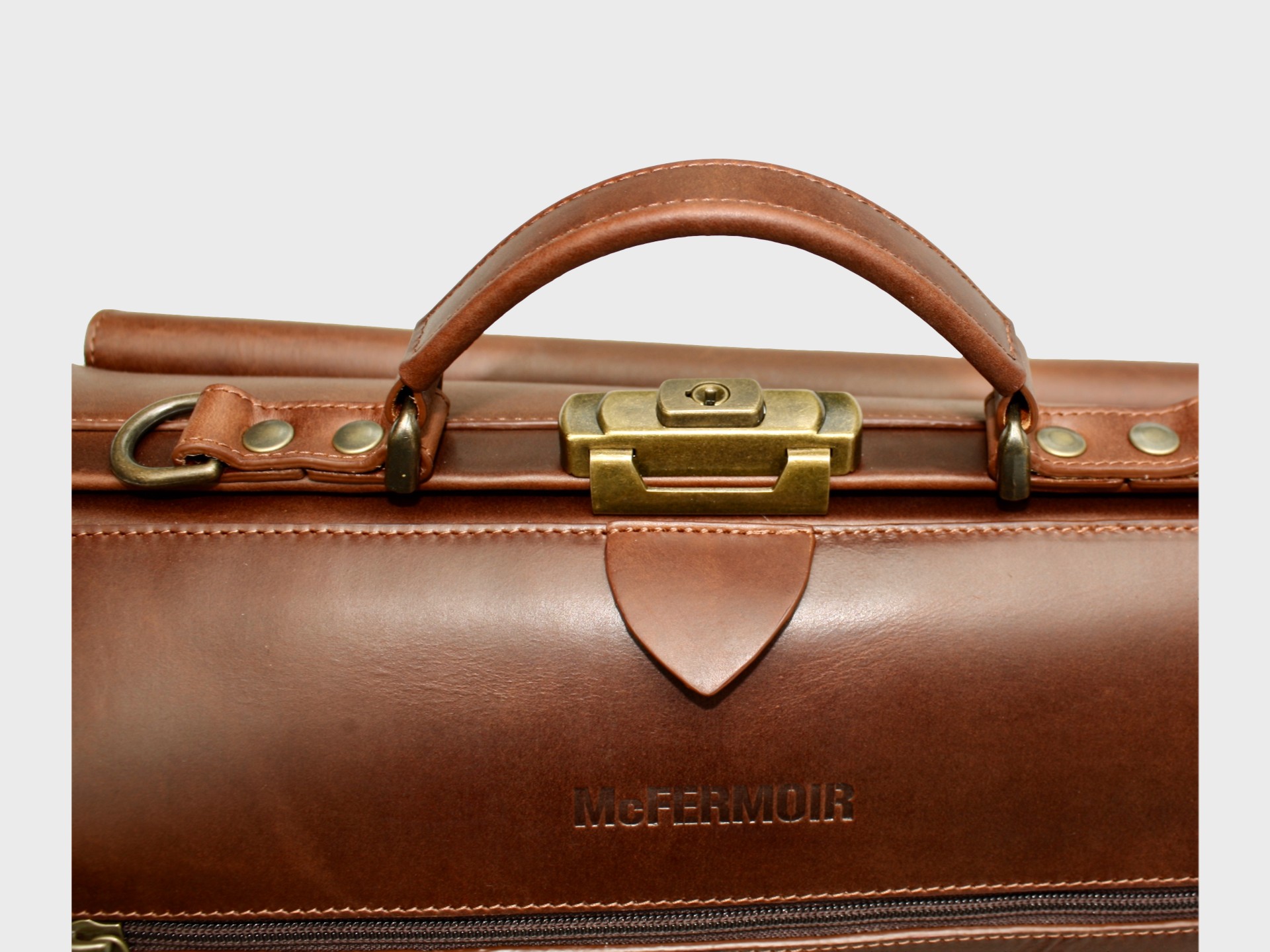 The magnetic flap closure is expertly integrated into a wide strip of leather, which provides extra stability and a reliable closure. All closures on McFermoir doctor’s bags come with a lifetime warranty: in case of a defect, the closure will be repaired or replaced free of charge. This bag is built to last for decades – literally a bag for life.