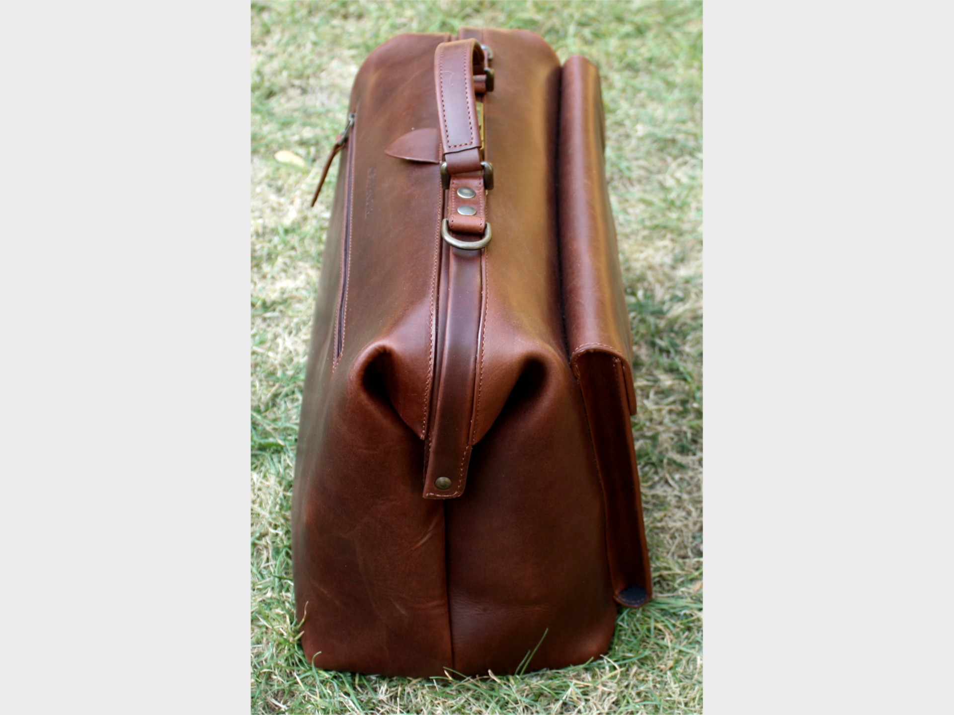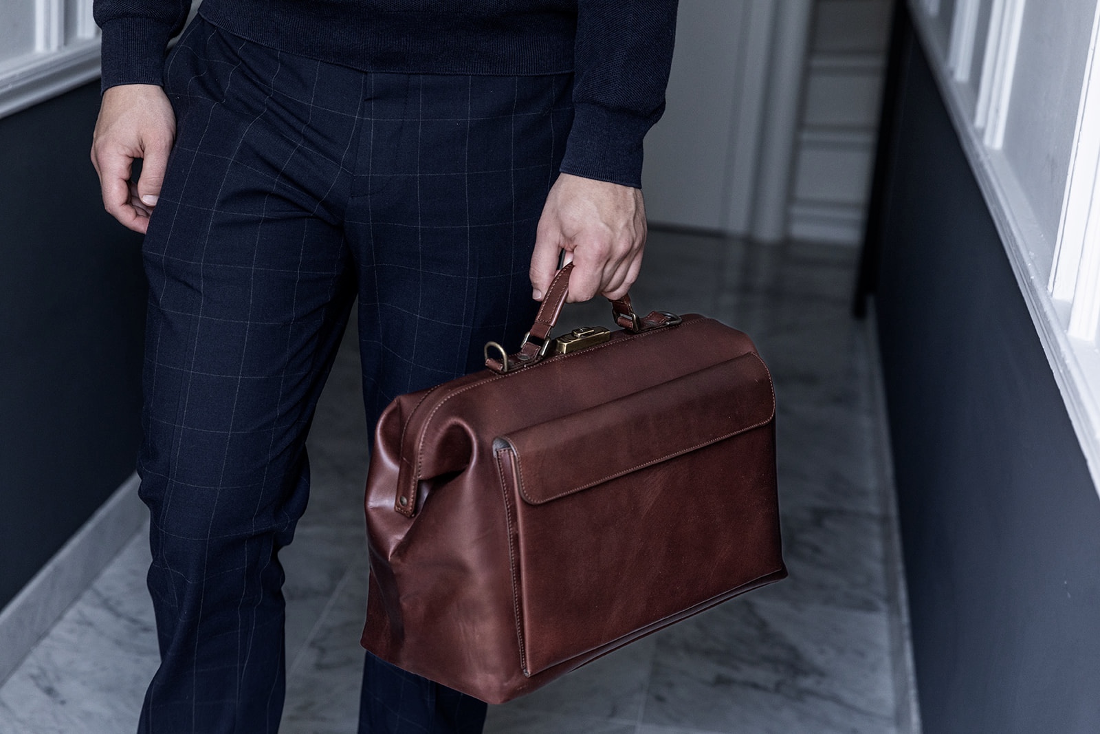This doctor’s bag is made from high-quality leather with a beautiful soft, matte lustre that gives the bag an elegant and professional appearance. The leather has been kept as natural as possible, which means natural characteristics such as scratches, creases and colour variations may occur. This makes each bag unique. The leather can be easily maintained with shoe polish, for example, which helps the bag retain its beautiful colour for years and only becomes more attractive with use.