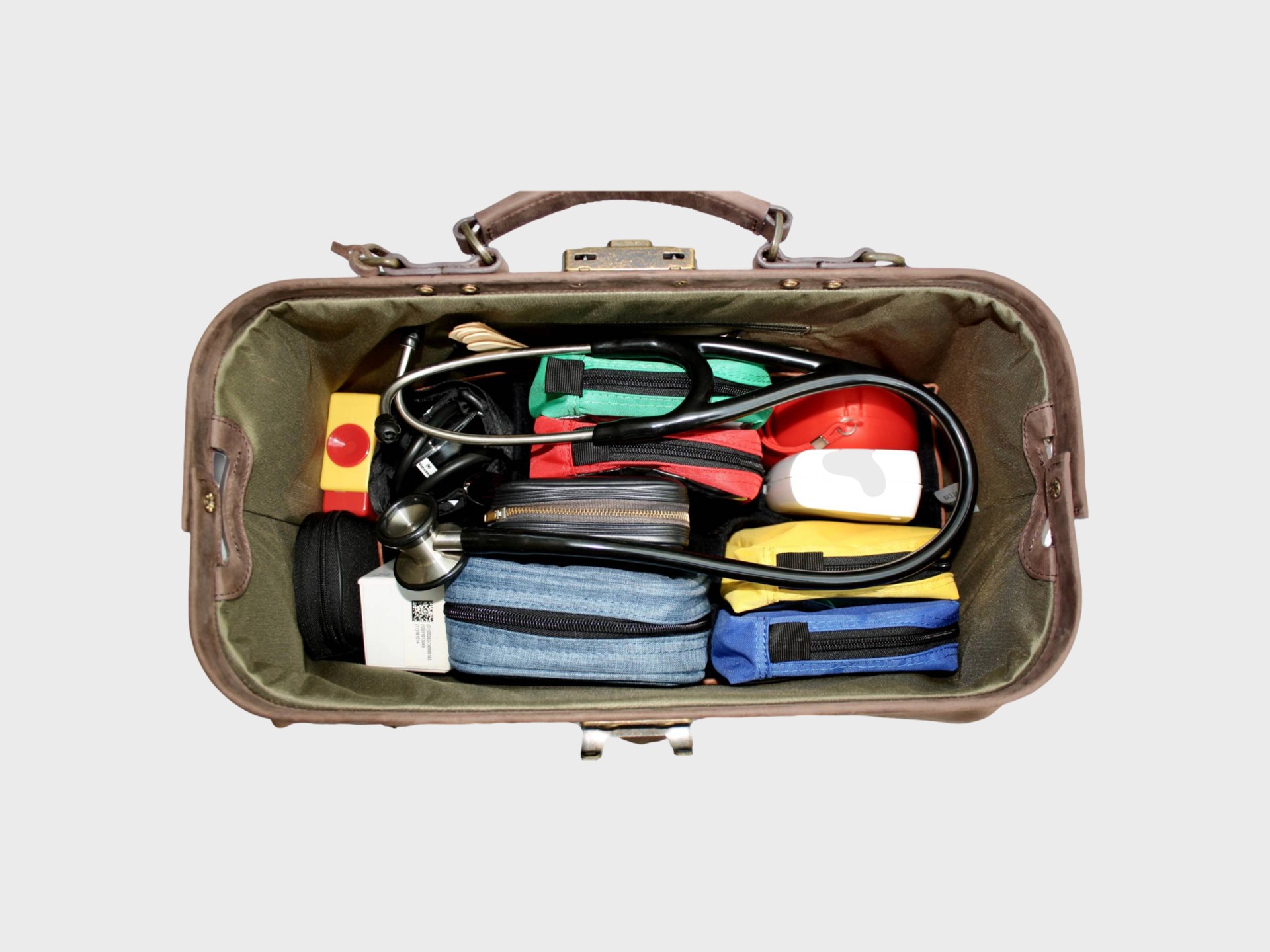 Thanks to smart construction, this doctor’s bag stays perfectly open during use. This gives GPs direct overview of all medical instruments. The luxury leather compartment system is removable and adjustable (1 long, 3 short dividers). Zip pocket outside for keys and smartphone.