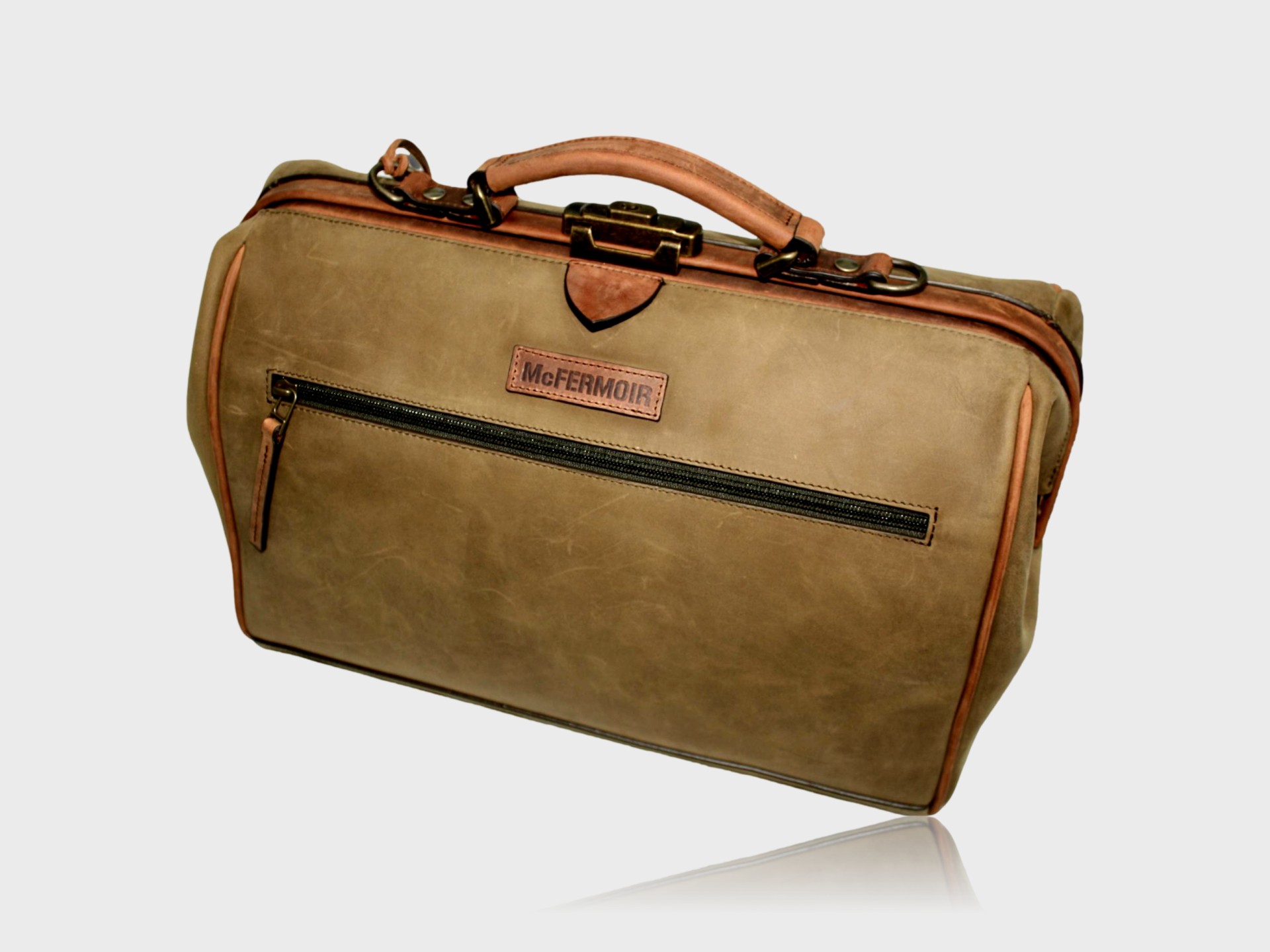 The McFermoir doctor’s bag Wout Basic 753011 Taupe with ranger is a handmade leather doctor’s bag for GPs made from vegetable-tanned leather from Belgium. This medical bag combines supple taupe leather with robust ranger leather in a compact version without A4 front pocket. Developed with GPs – a doctor’s bag for life.