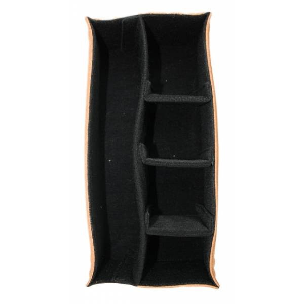 - Compartment system: Removable leather, adjustable (1 long, 3 short dividers)