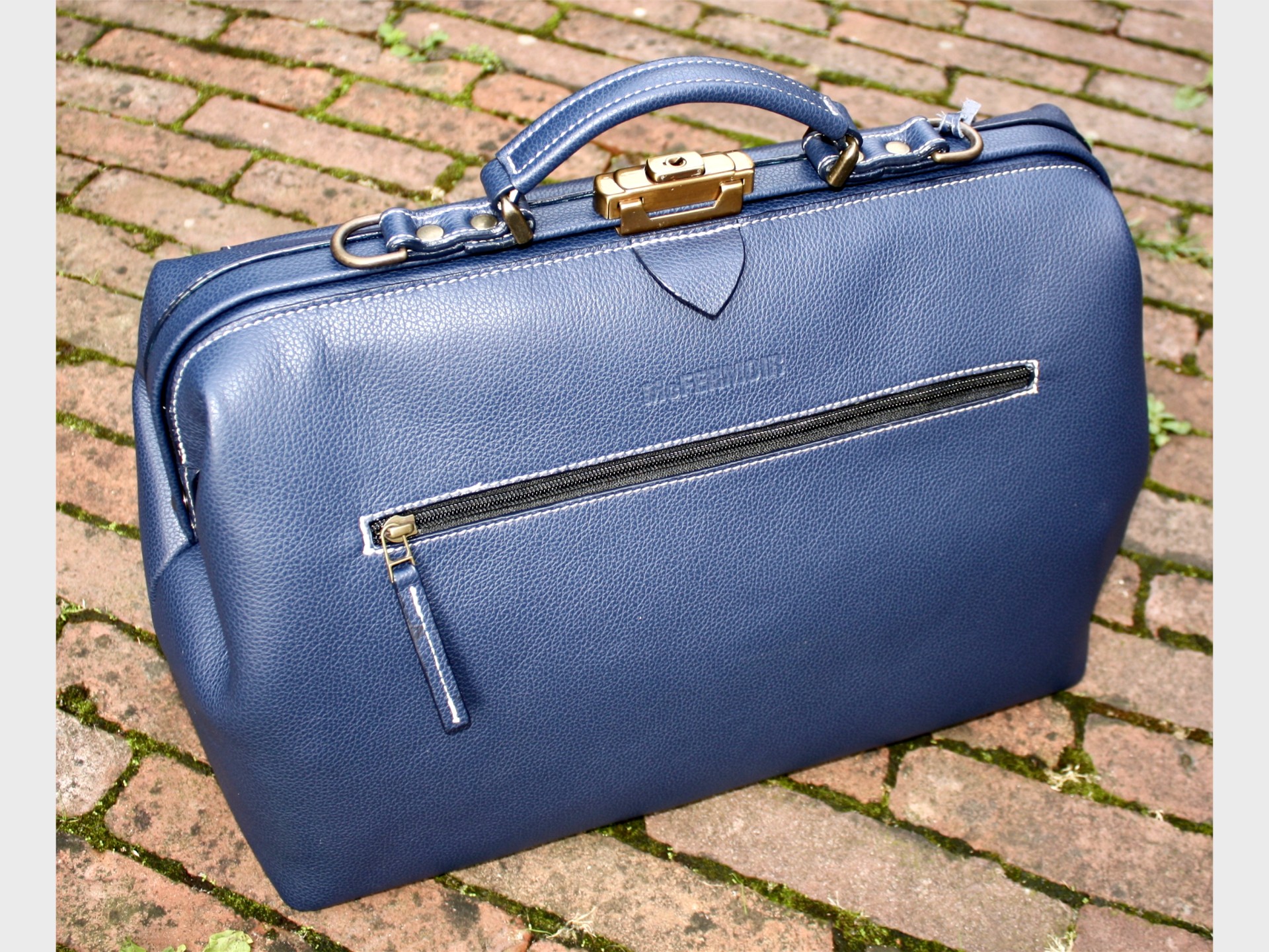 The Fashion A4 doctor’s bag Marine distinguishes itself through the marine blue colour in high-quality Italian leather. The Fashion series offers the same functionality as the Wout A4, but with distinctive colours. This Fashion A4 doctor’s bag is the result of years of development with GPs and midwives. All practical improvements are incorporated: magnetic flap closure, adjustable compartment system and construction that ensures the bag stays perfectly open.