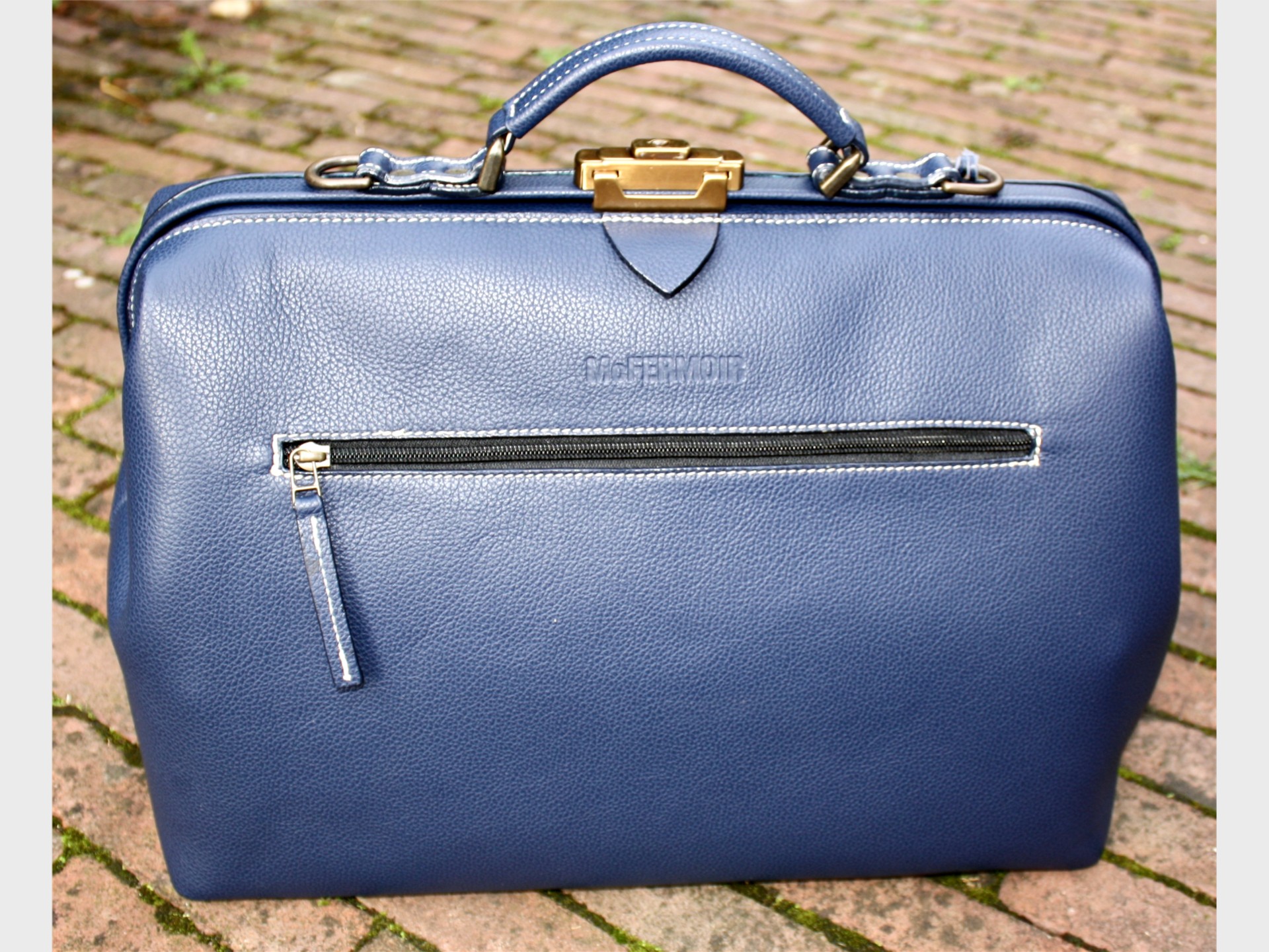 The McFermoir Fashion A4 doctor’s bag FA3016 Marine is a spacious medical bag made from handcrafted Italian leather in marine blue. This Fashion A4 doctor’s bag combines the proven functionality of the Wout A4 series with a contemporary colour. With additional A4 pocket, 2 shoulder straps and leather compartment system – developed in collaboration with GPs and midwives. Durable and handcrafted in Europe.