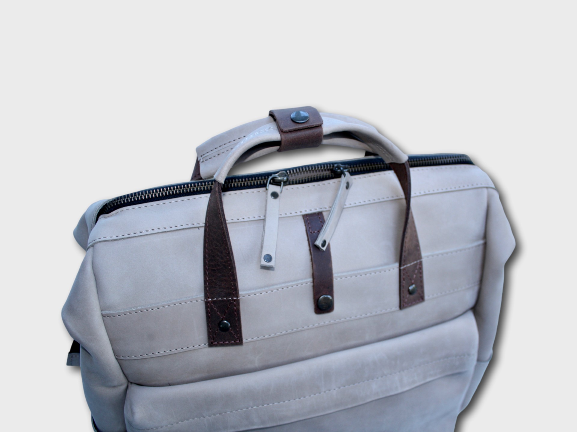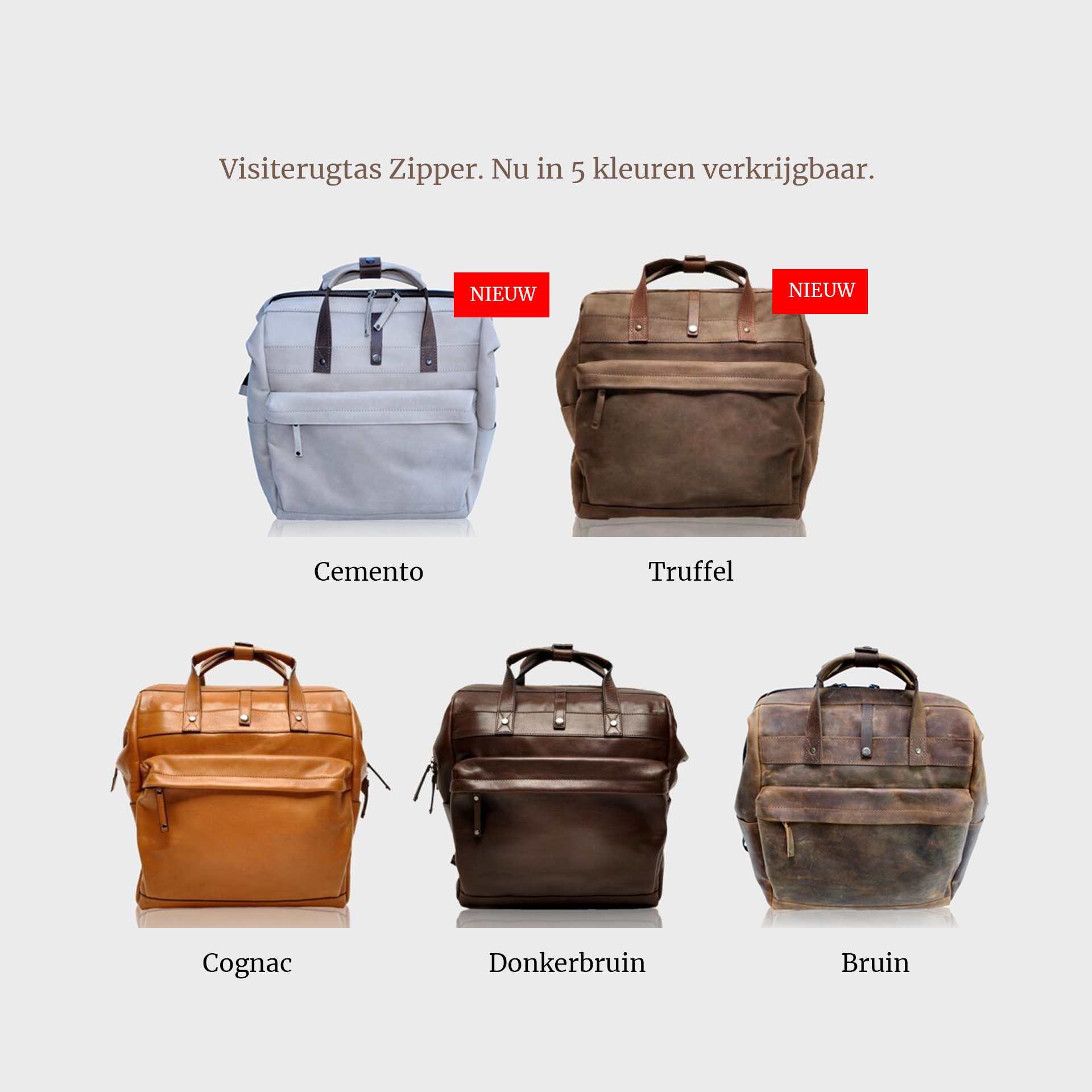 The house call backpack Zipper is available in: Brown, Cognac, Dark brown and Cemento