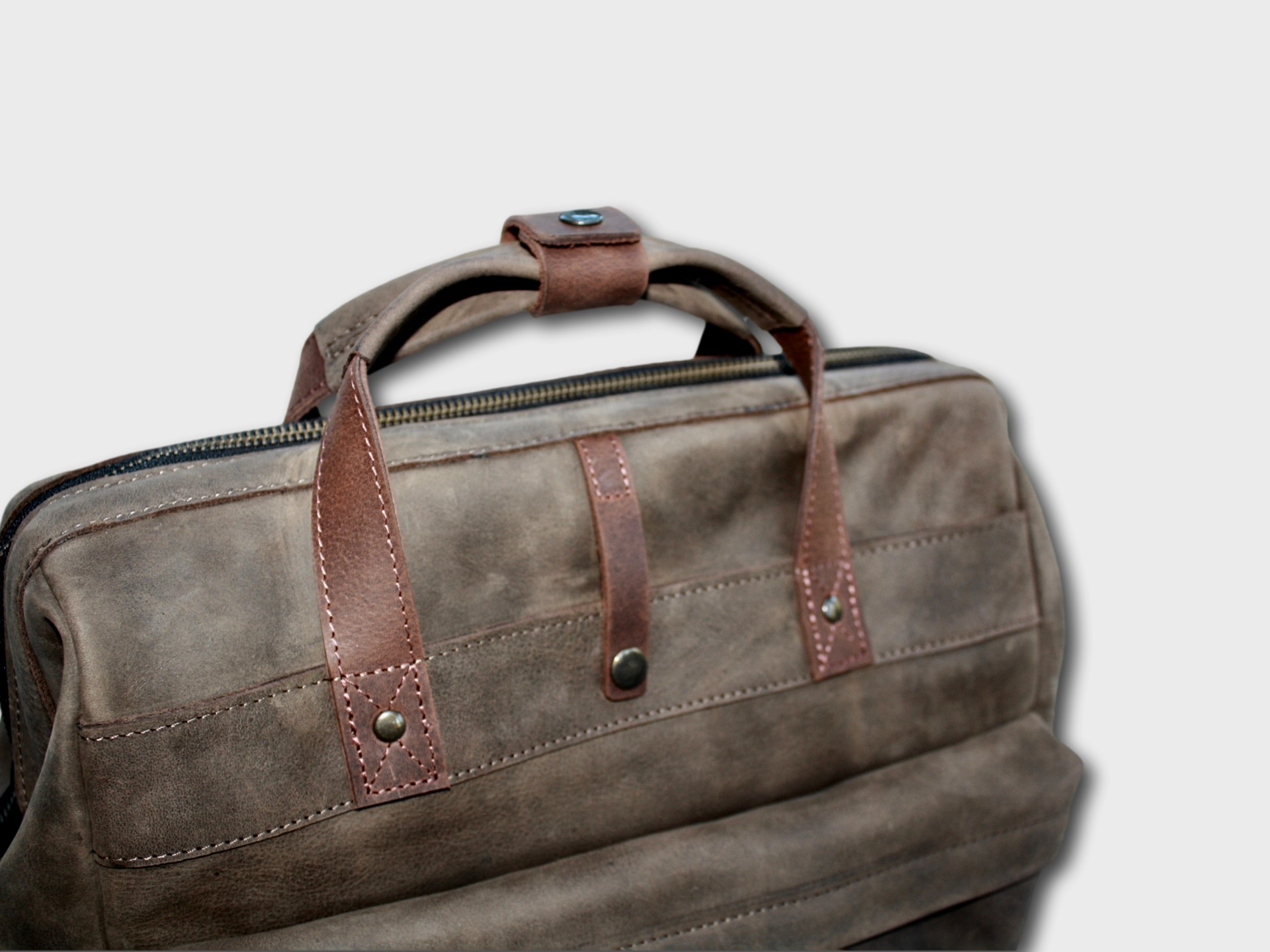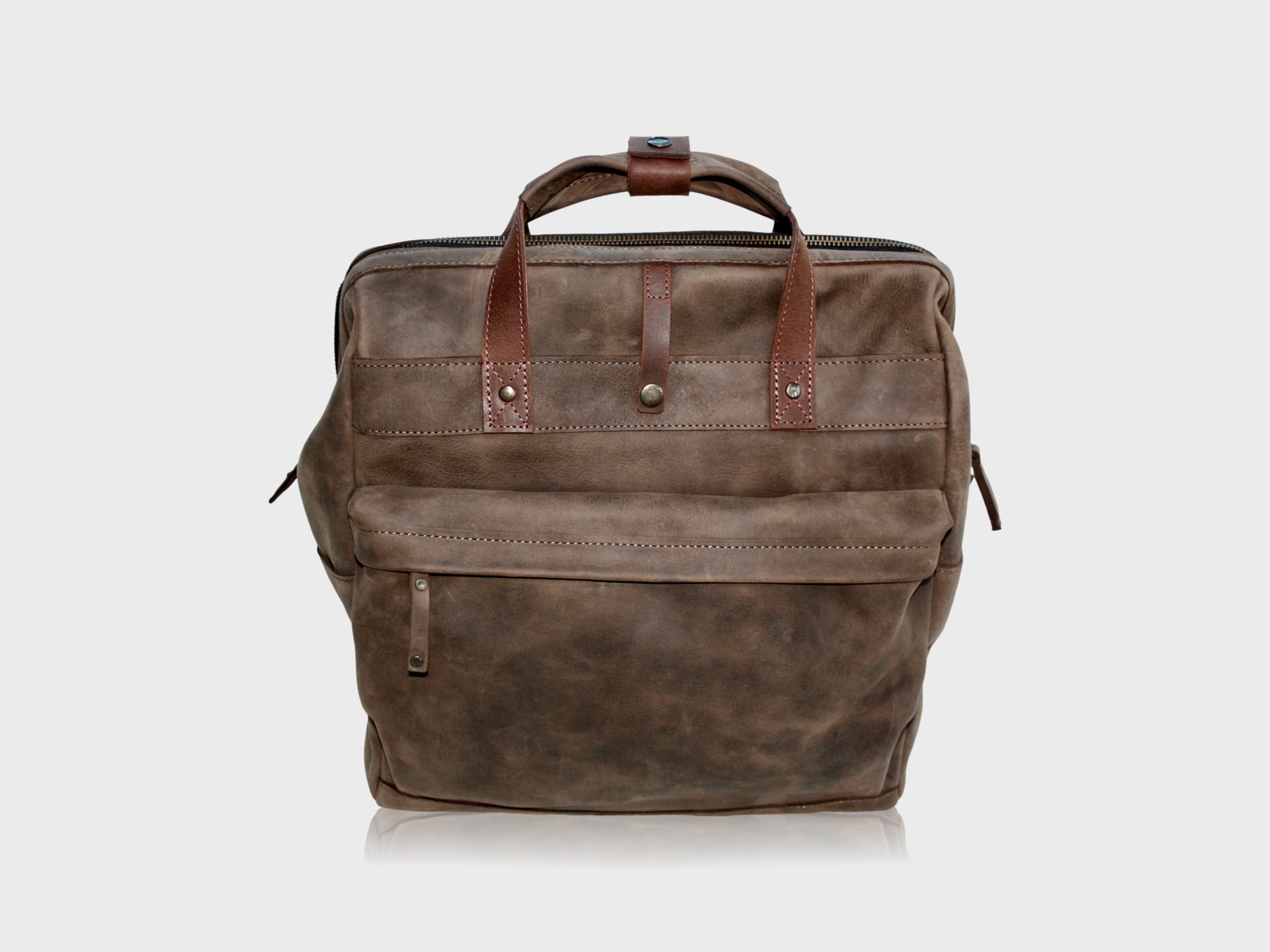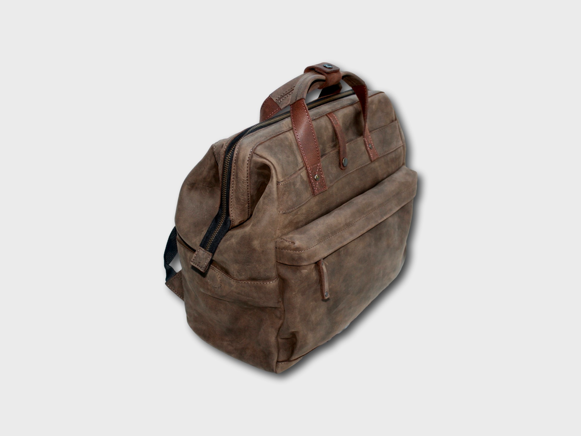 The house call backpack Zipper is available in: Brown, Cognac, Dark brown, Cemento and Truffle