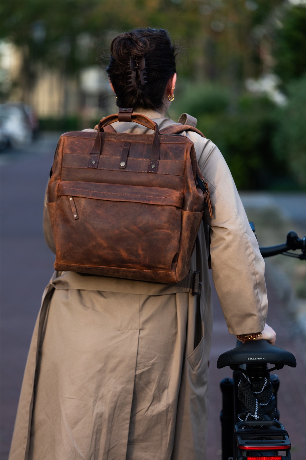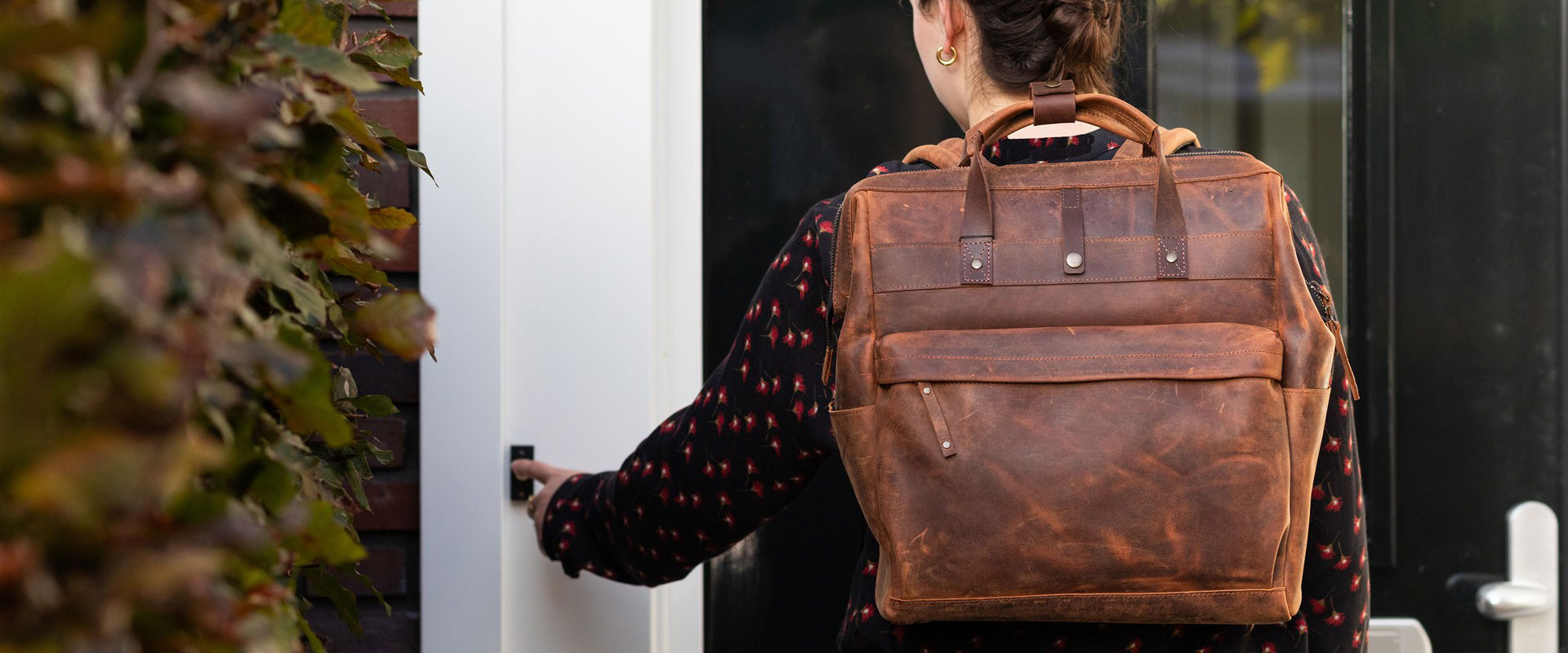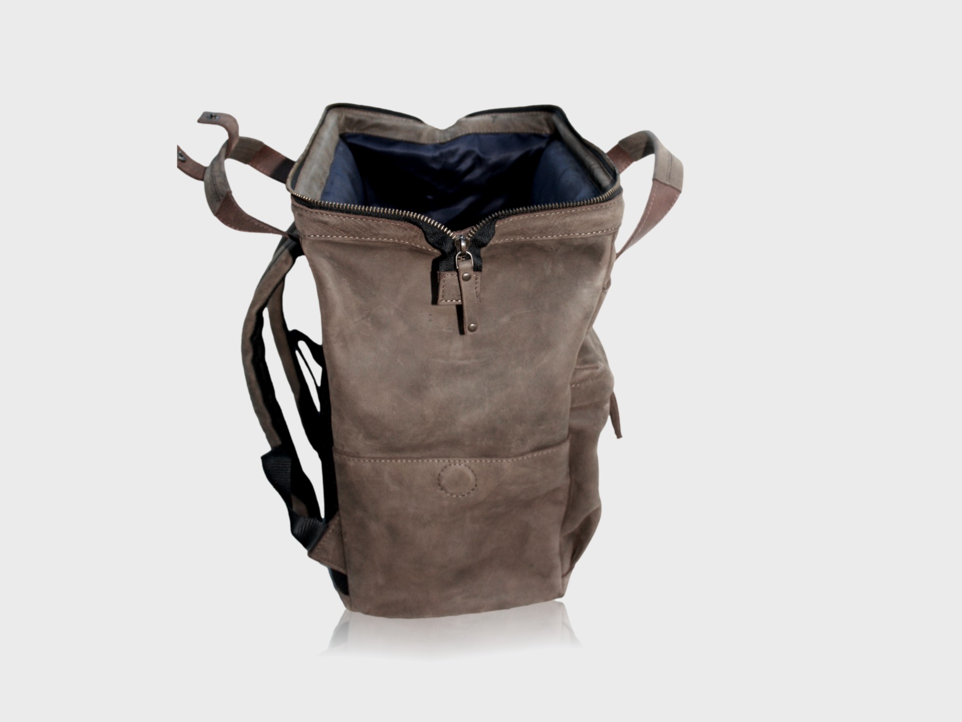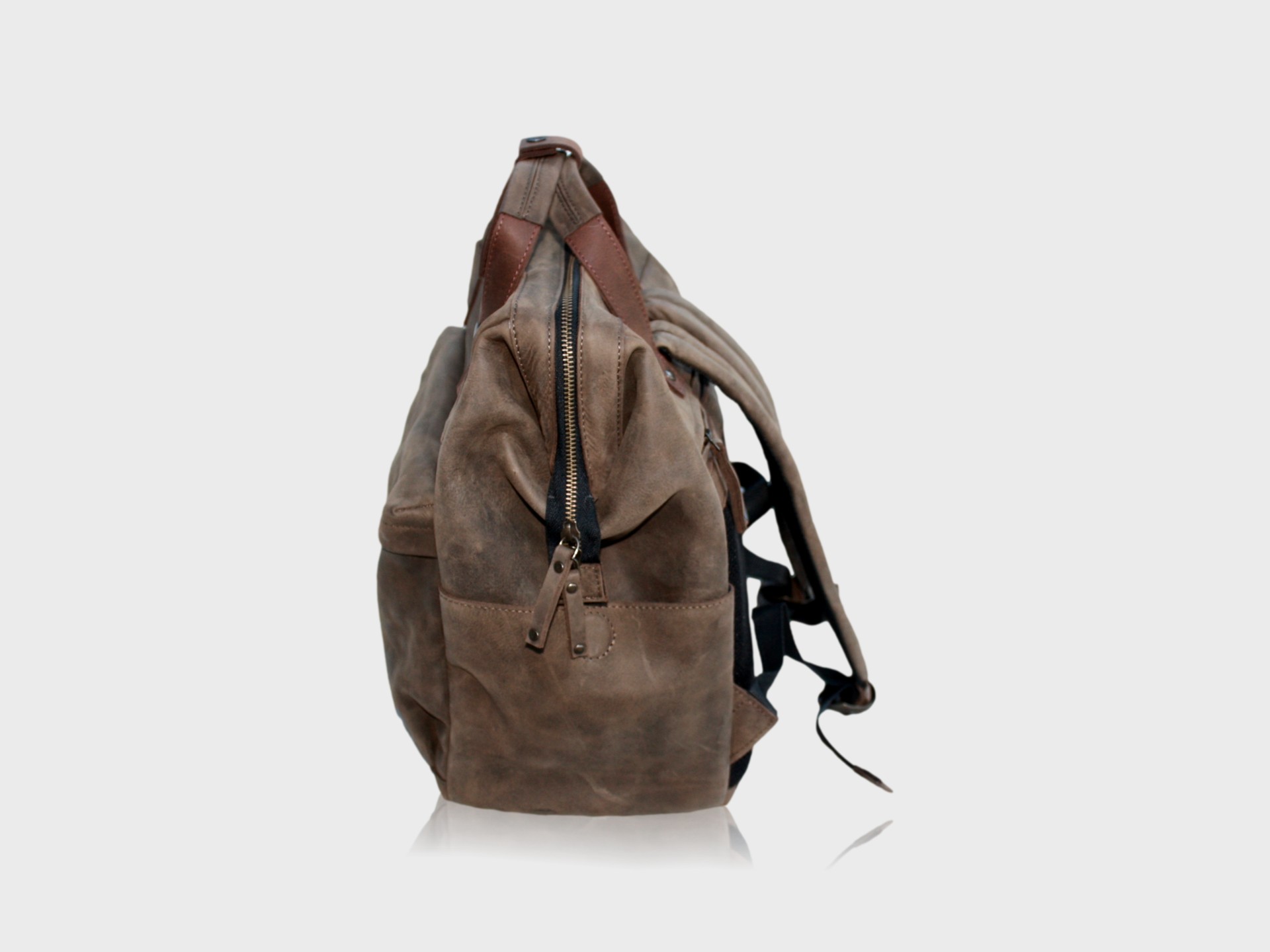 The house call backpack Zipper is available in: Brown, Cognac, Dark brown, Cemento and Truffle